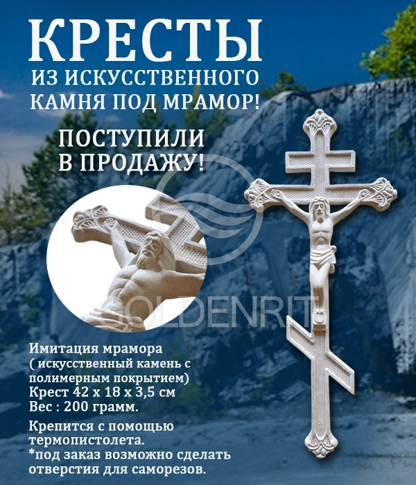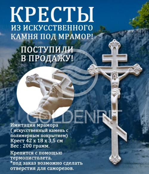 Крест ручной работы из искусственного камня с полимерным покрытием под мрамор.