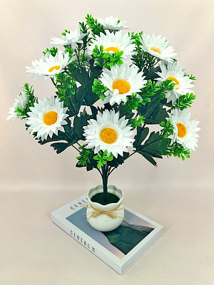 Искусственные ромашки подходят для декора дома, офиса, создания ландшафтных композиций и тематических букетов (например, на Пасху или для оформления кладбища).