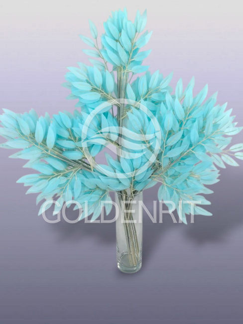 Искусственная ветка лавра голубого цвета — это декоративный элемент, который может использоваться для оформления интерьера, создания композиций или в качестве акцента в дизайне. Такие ветки имитируют натуральные листья лавра, но имеют необычный голубой оттенок, что делает их особенно выразительными.