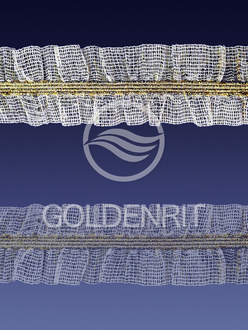 Рюш на резинке белая с золотом (42 мм)