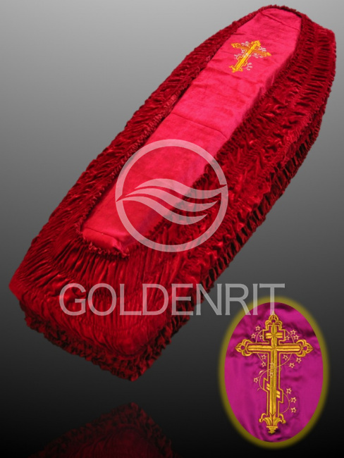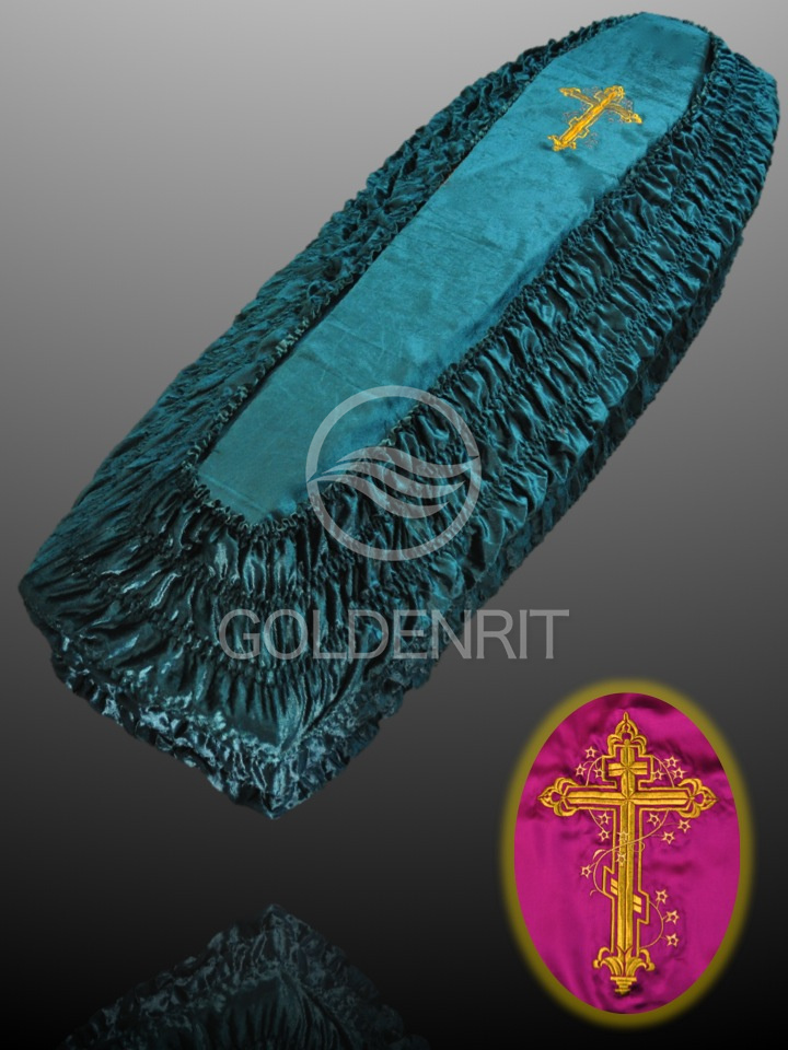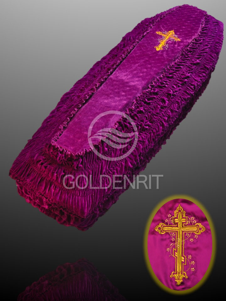 Обивка гроба из бархата с крышкой из парчи "Золотые огурцы"