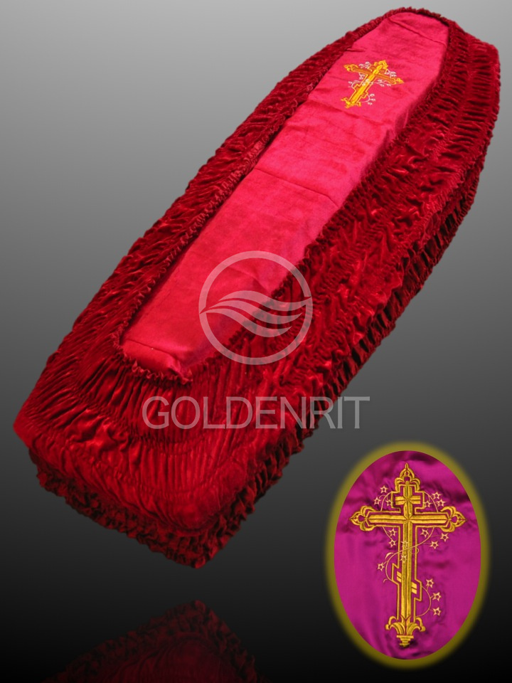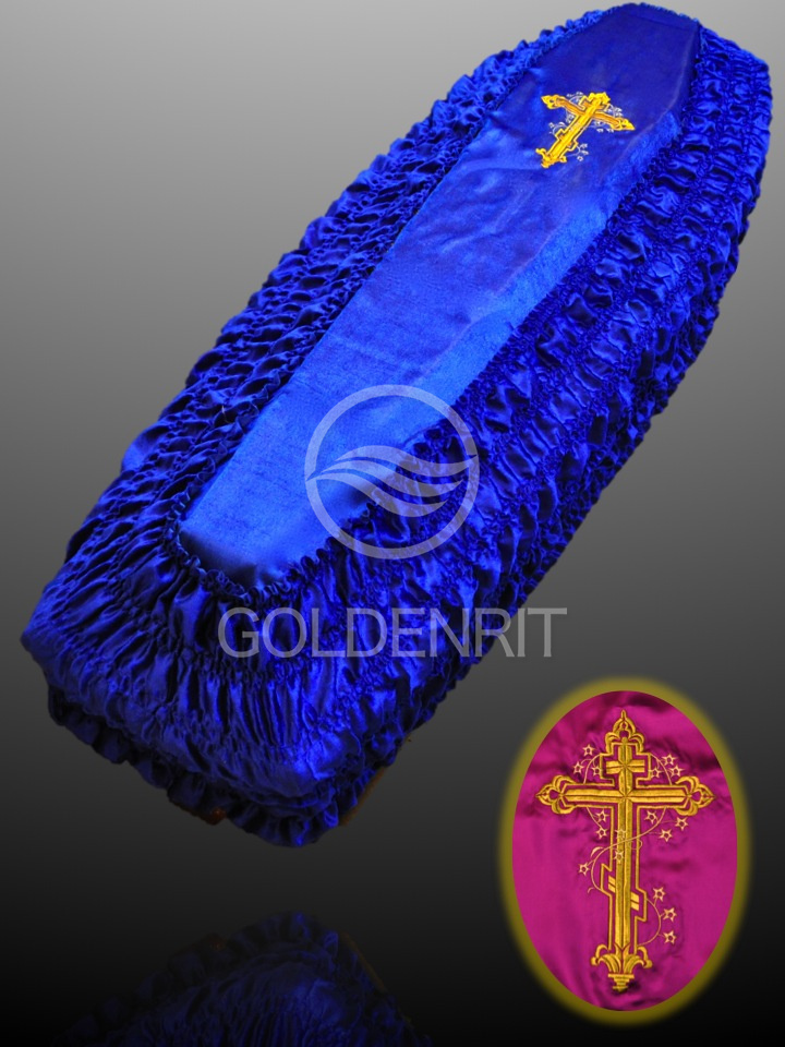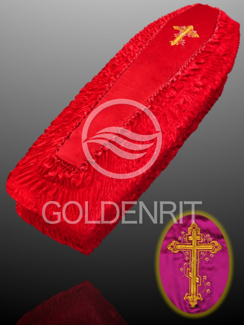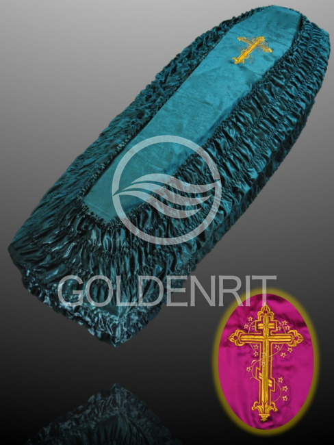 Внешняя обивка подходит на гроб любого размера от 1,6 до 2,4 м.