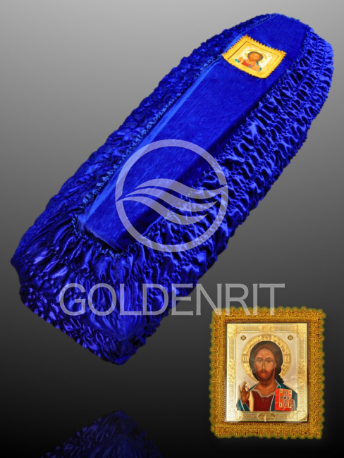 Обивка внешняя из бархата с ламинированной иконой с золотой тесьмой