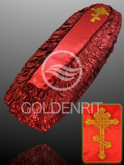 Обивка внешняя безразмерная из атласа, на крышке сверху- печатный глиттером "Крест Солнце"