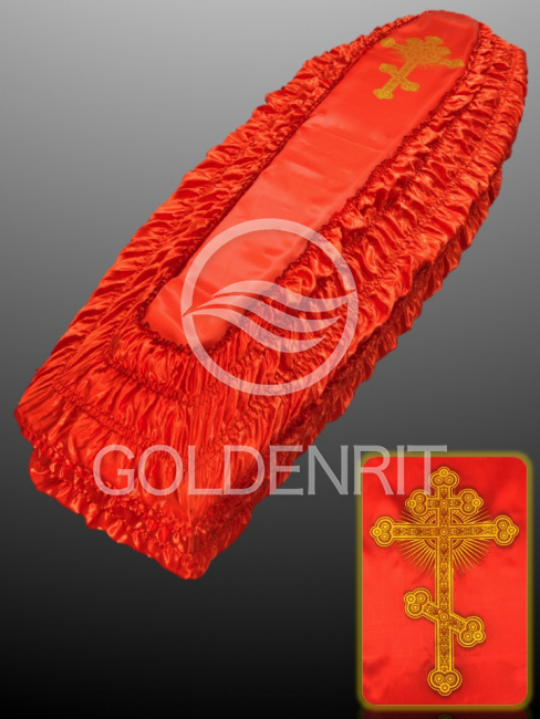 Обивка внешняя безразмерная из атласа с золотыми крестами