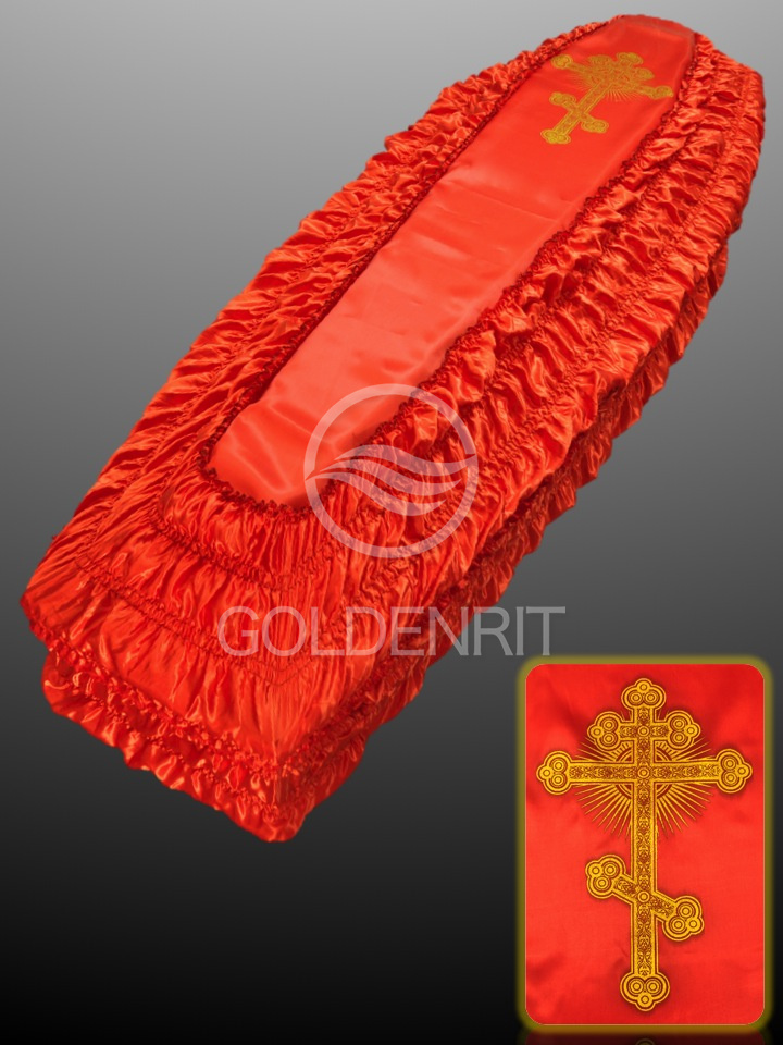 Внешняя обивка подходит на гроб любого размера от 1,6 до 2,4 м.