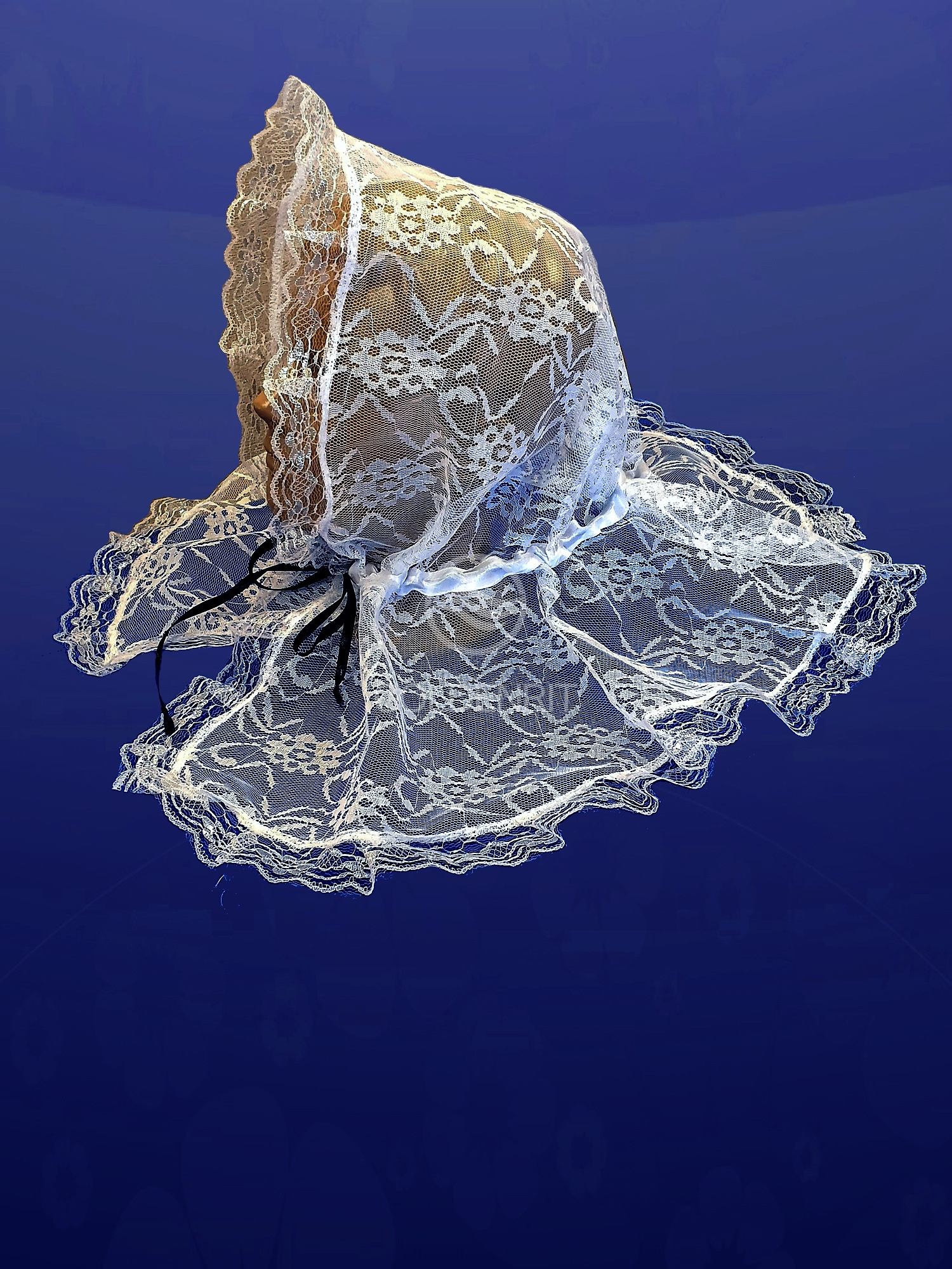 Капор из белого гипюра на завязках.