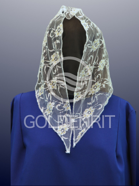 Косынка ритуальная белая "Золотые цветы"