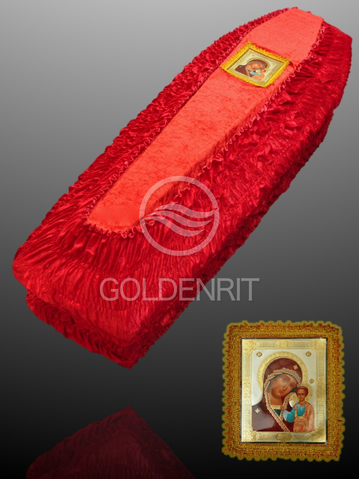 Обивка внешняя из бархата с ламинированной иконой с золотой тесьмой