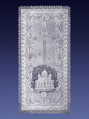 Отделка серебряной тесьмой с орнаментом.