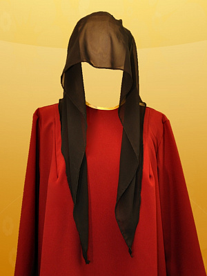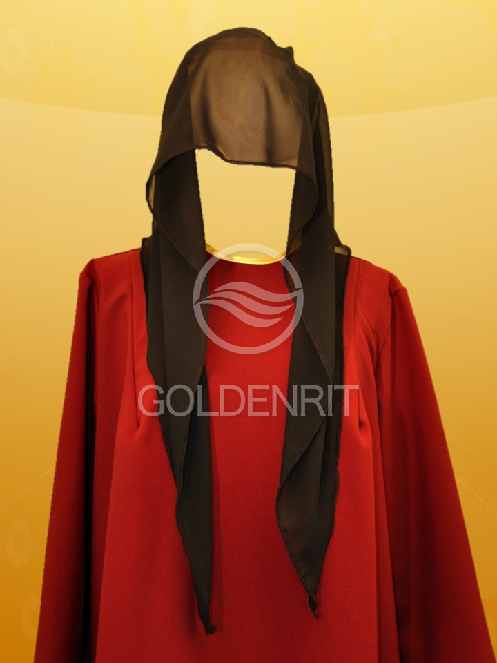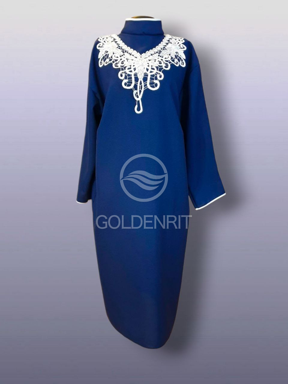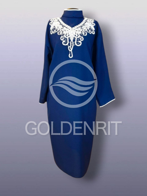 Элегантное женское ритуальное платье с ажурным воротником с жемчужинами.