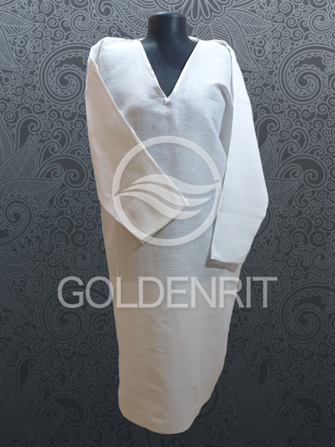 Женская сорочка из х/б бязи с отделкой атласной бейкой и V-вырезом.