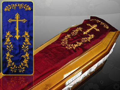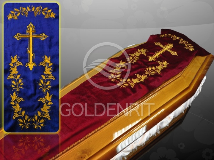 Крышка на гроб с вышивкой "Крест с виноградом"