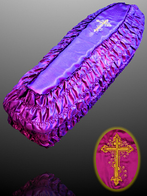 Обивка гроба из парчи с вышитым крестом