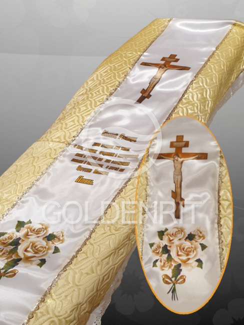 Отделка - золотая тесьма.