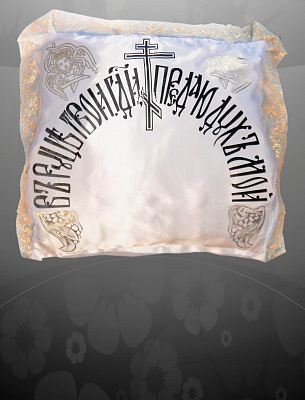 Подушка шелковая с молитвой и кружевом