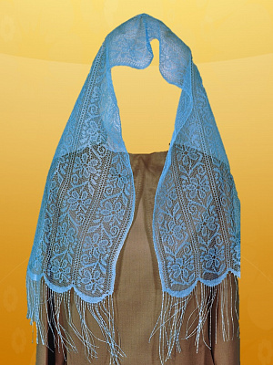 Шарф голубой с бахромой