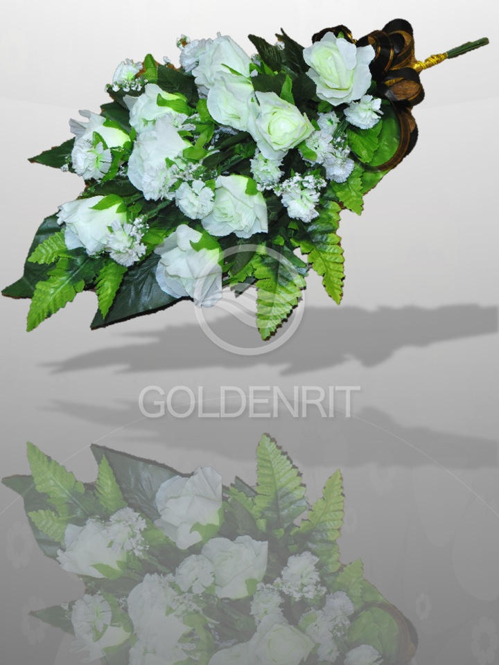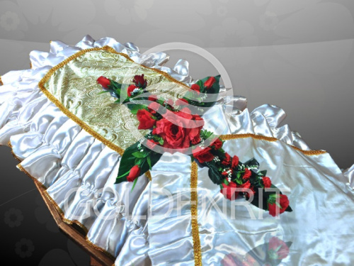 Комплект: Покрывало атласное белое с золотой парчей "Огурцы" и волланом (размер 2,0*1,0 м)